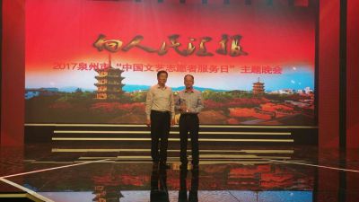 泉州市政協(xié)副主席駱沙鳴為蔣欽全頒發(fā)“泉州市優(yōu)秀文藝志愿者”獎杯 5月23日,“向人民匯報(bào)——2017泉州市“中國文藝志愿者服務(wù)日”主題晚會在泉州市廣播電視臺舉行,來自我…