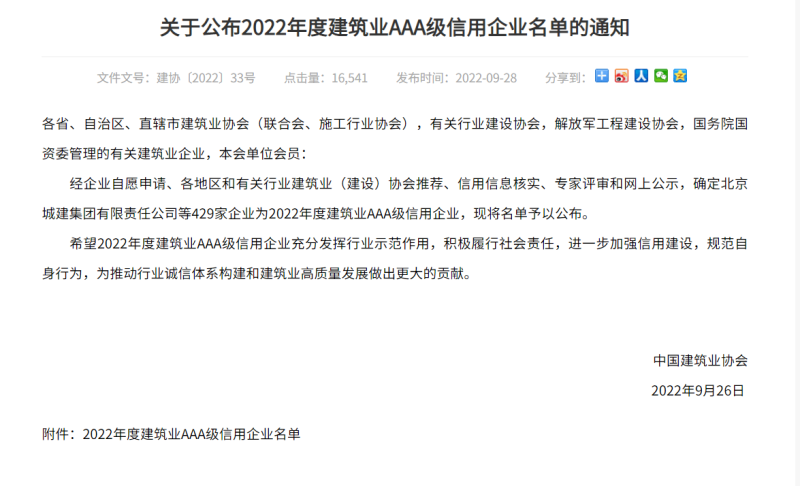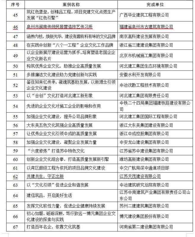 近日,中國建筑業(yè)協(xié)會公布了“2022年度建筑業(yè)AAA級信用企業(yè)”名單,福建省泉州市古建筑有限公司榜上有名。