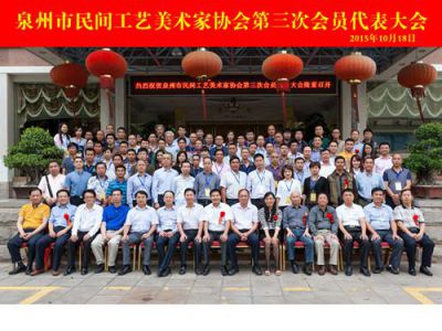 2015年10月18日,泉州市民間工藝美術家協會召開第三次會員代表大會,會議依照協會章程,民主選舉產生了協會第三屆理事會、常務理事和主席、副主席、秘書長。我司董事長蔣欽全…