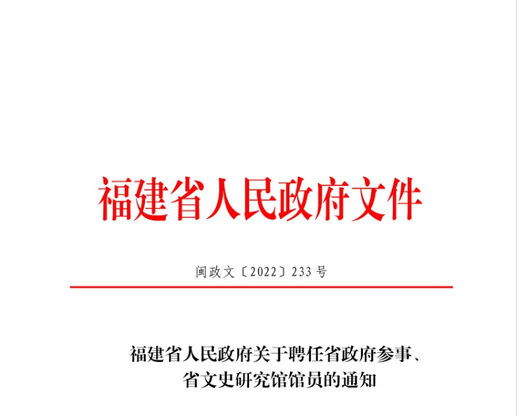 福建省人民政府關于聘任省政府參事、省文史研究館館員的通知